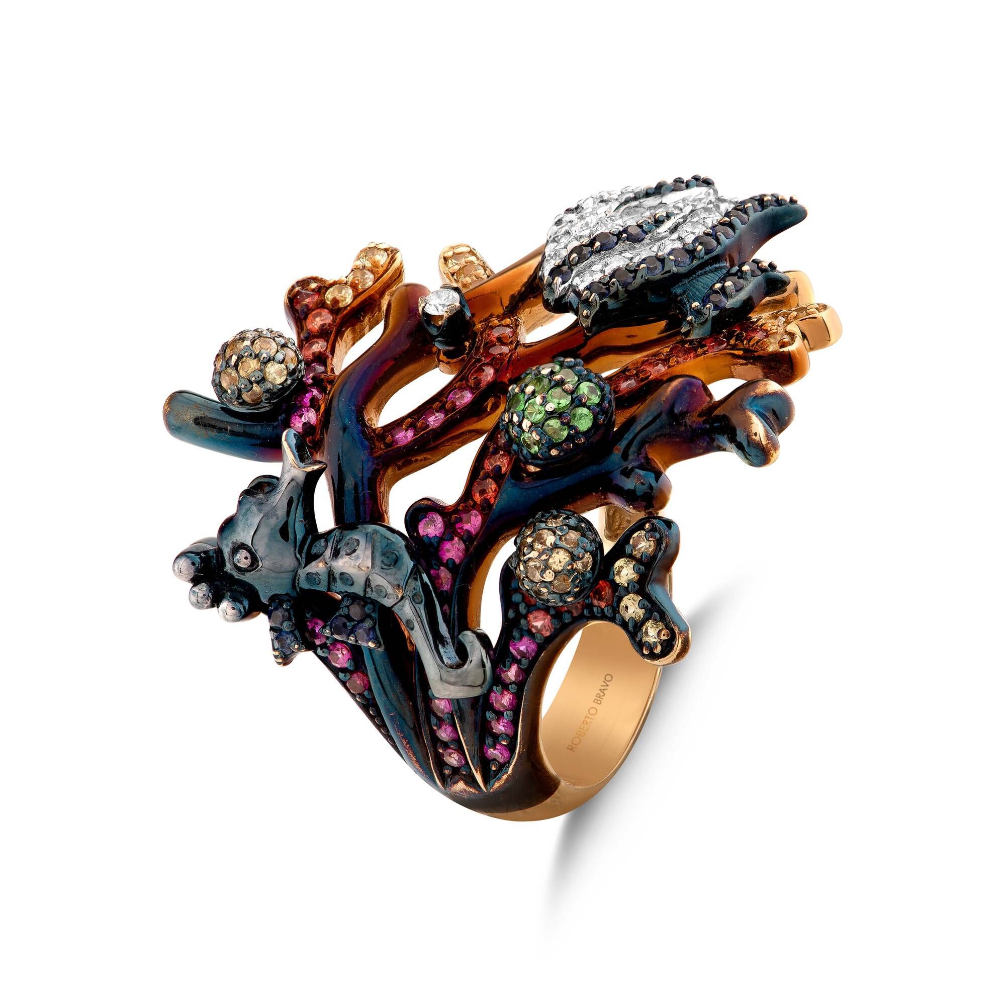 Roberto Bravo Le Grand Blue Koleksiyonu, deniz ve okyanusların altındaki mavi cennetten esinlenerek karşı koyulması güç benzersiz el işçiliği tasarımları yüzük, küpe, kolye ve bilek ürünleri içeriyor.