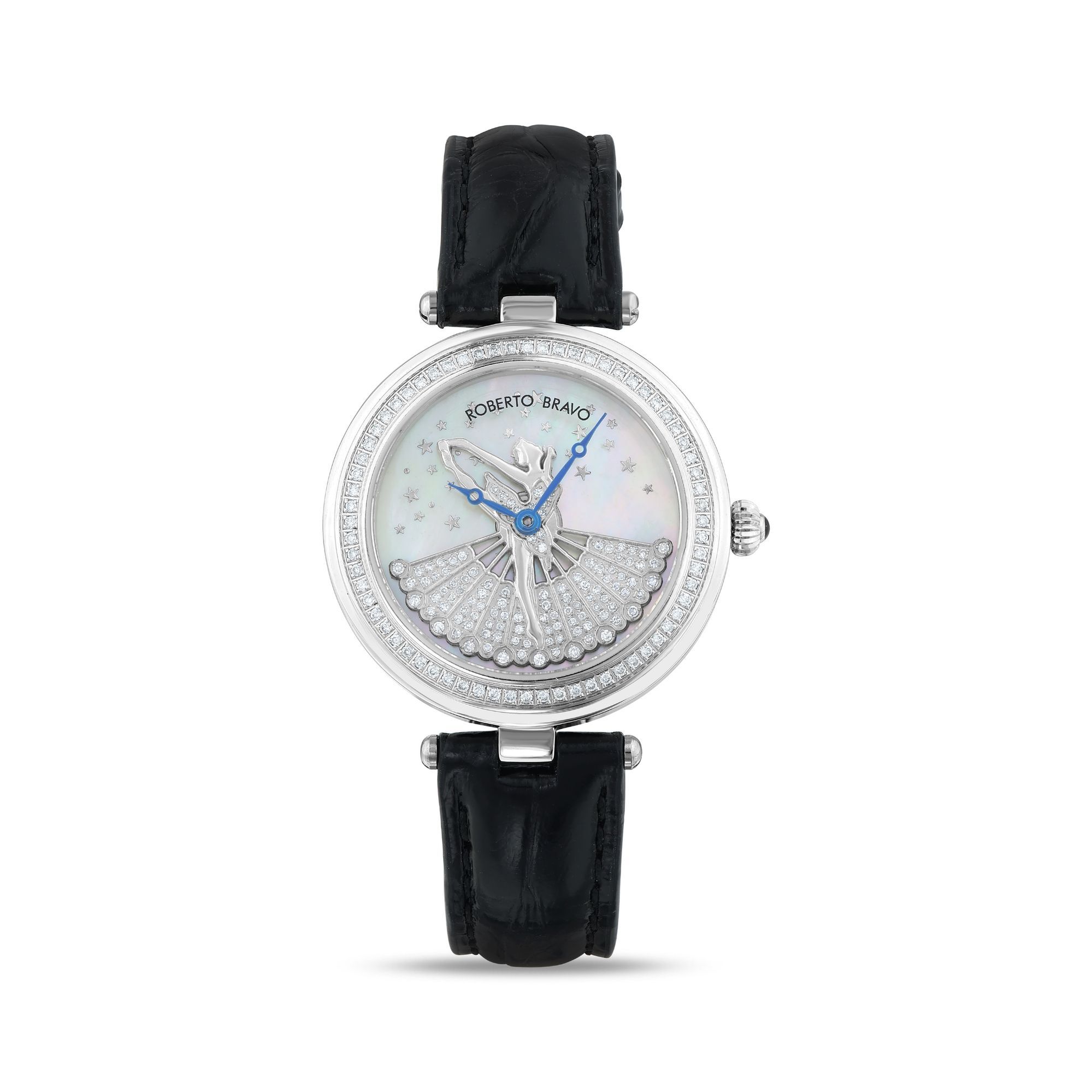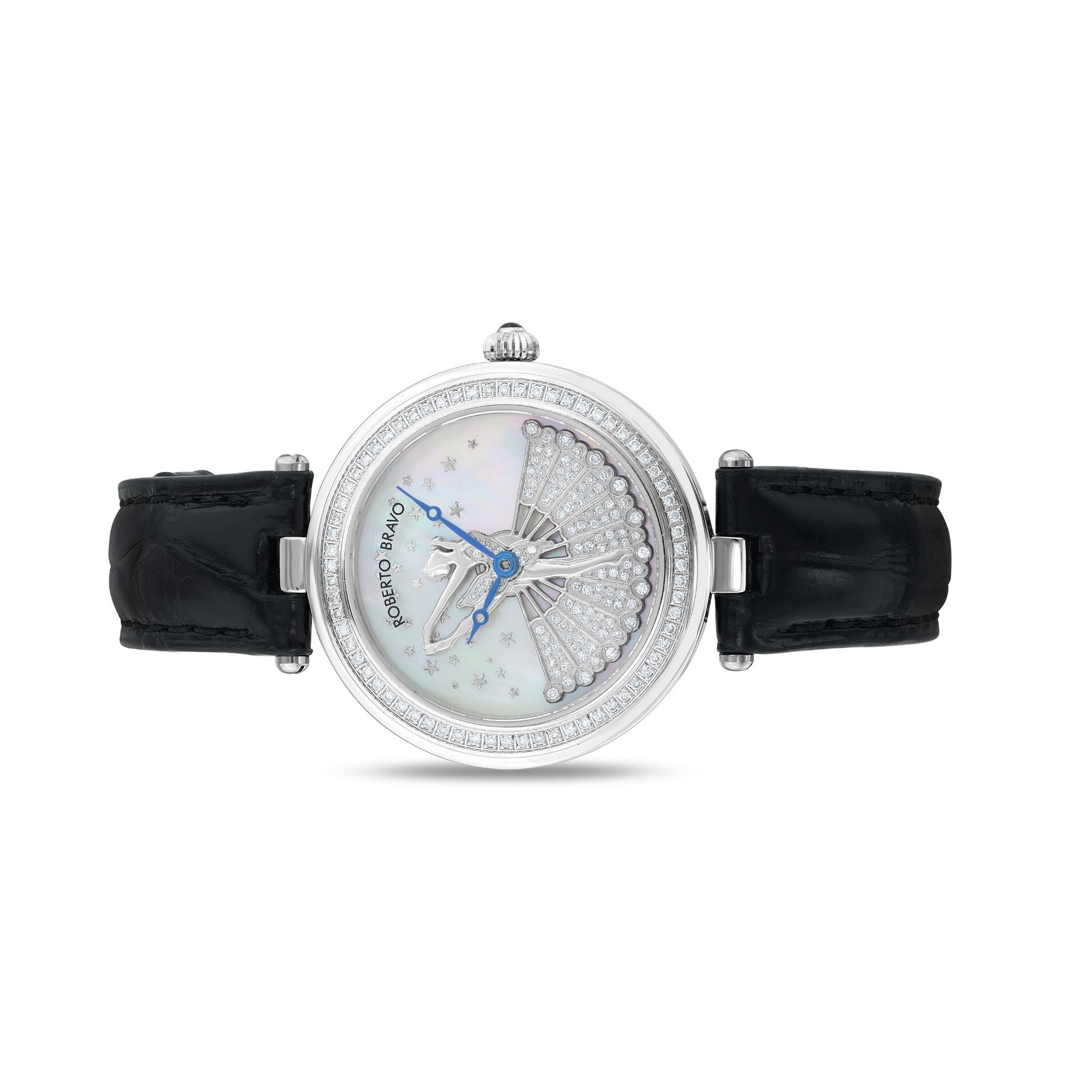 Estetik görünümü ve dakikliğin yanı sıra Roberto Bravo, egzotik taşlar ve elmaslarla kaplı özel saatlerle büyünüzün kağnağı olur.