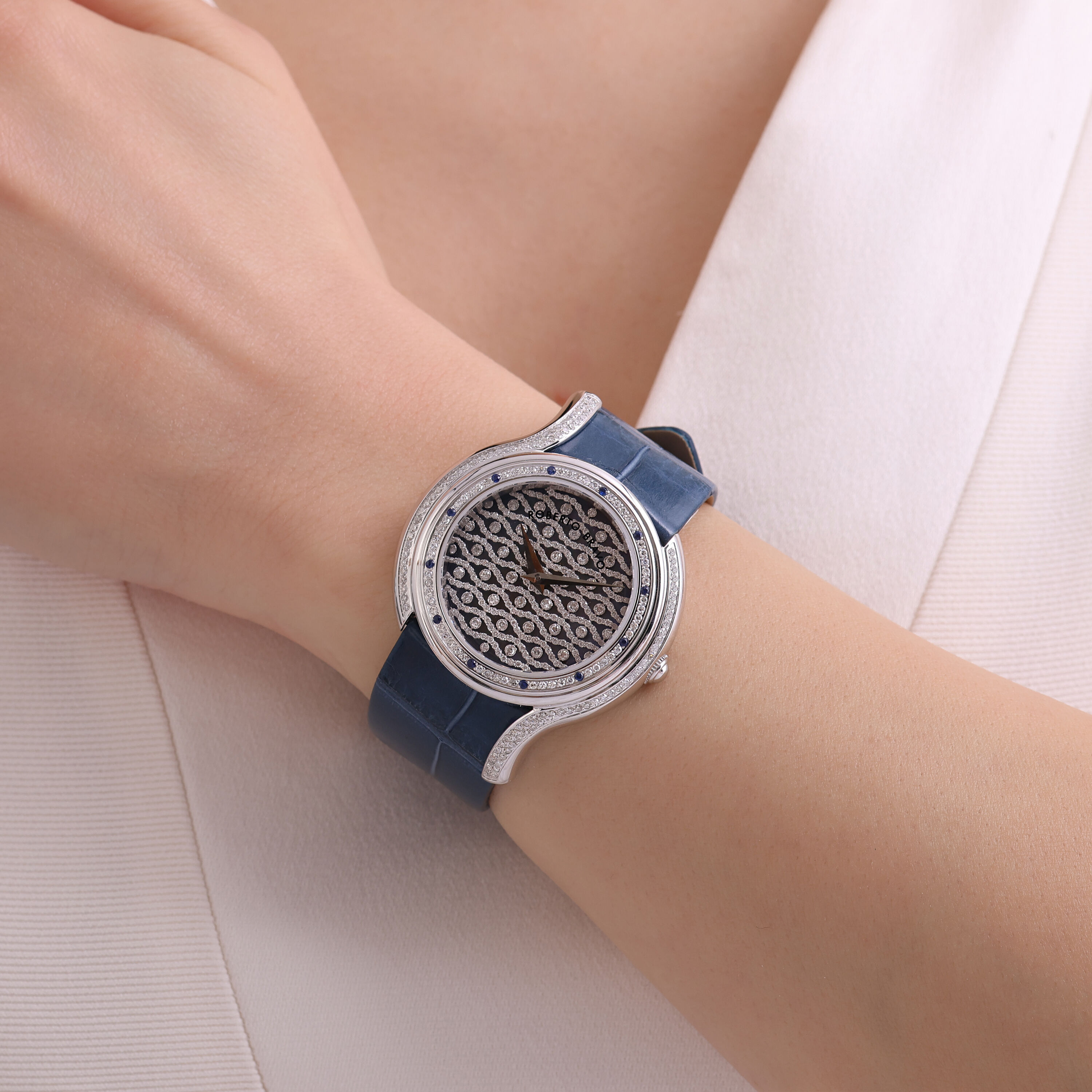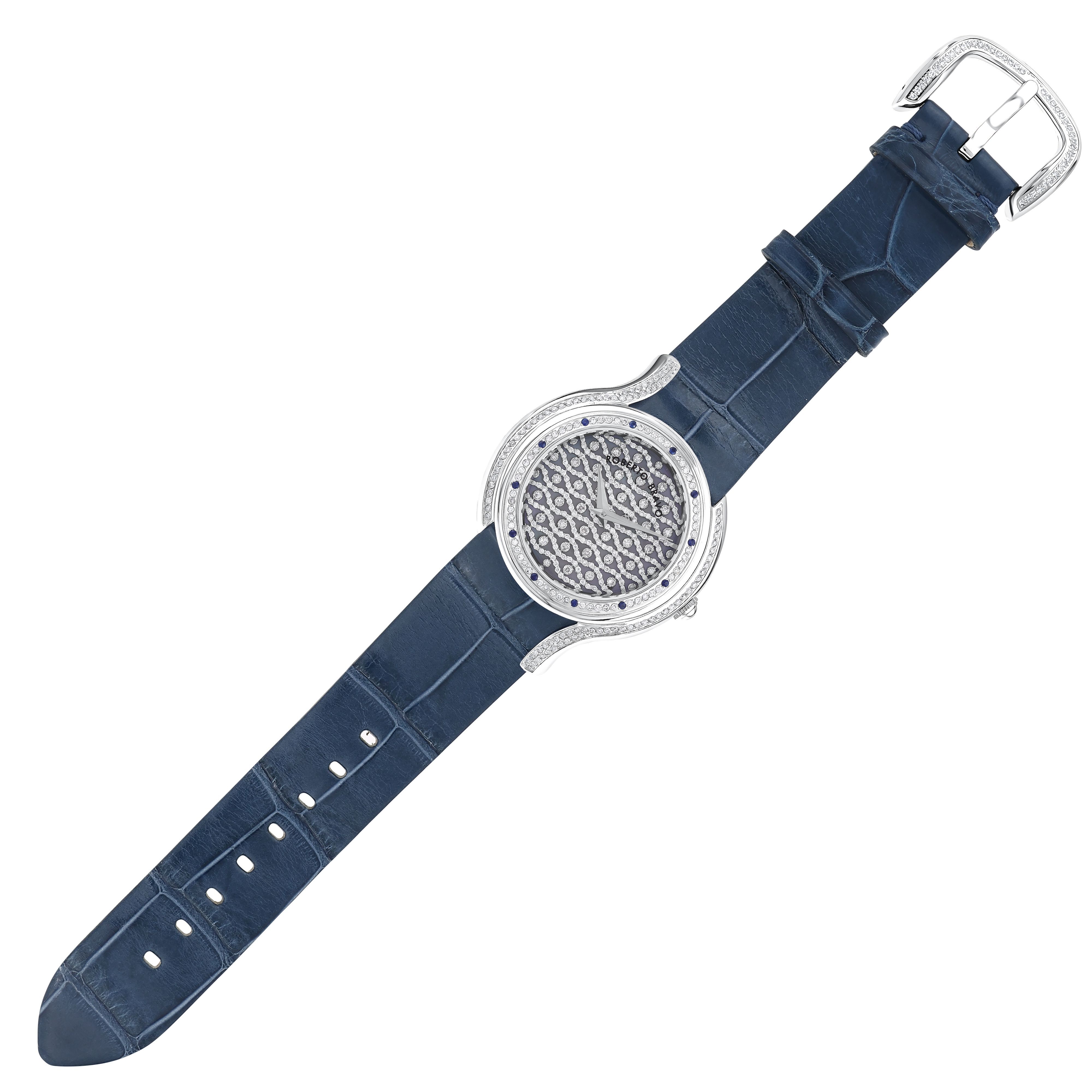 Estetik görünümü ve dakikliğin yanı sıra Roberto Bravo, egzotik taşlar ve elmaslarla kaplı özel saatlerle büyünüzün kağnağı olur.