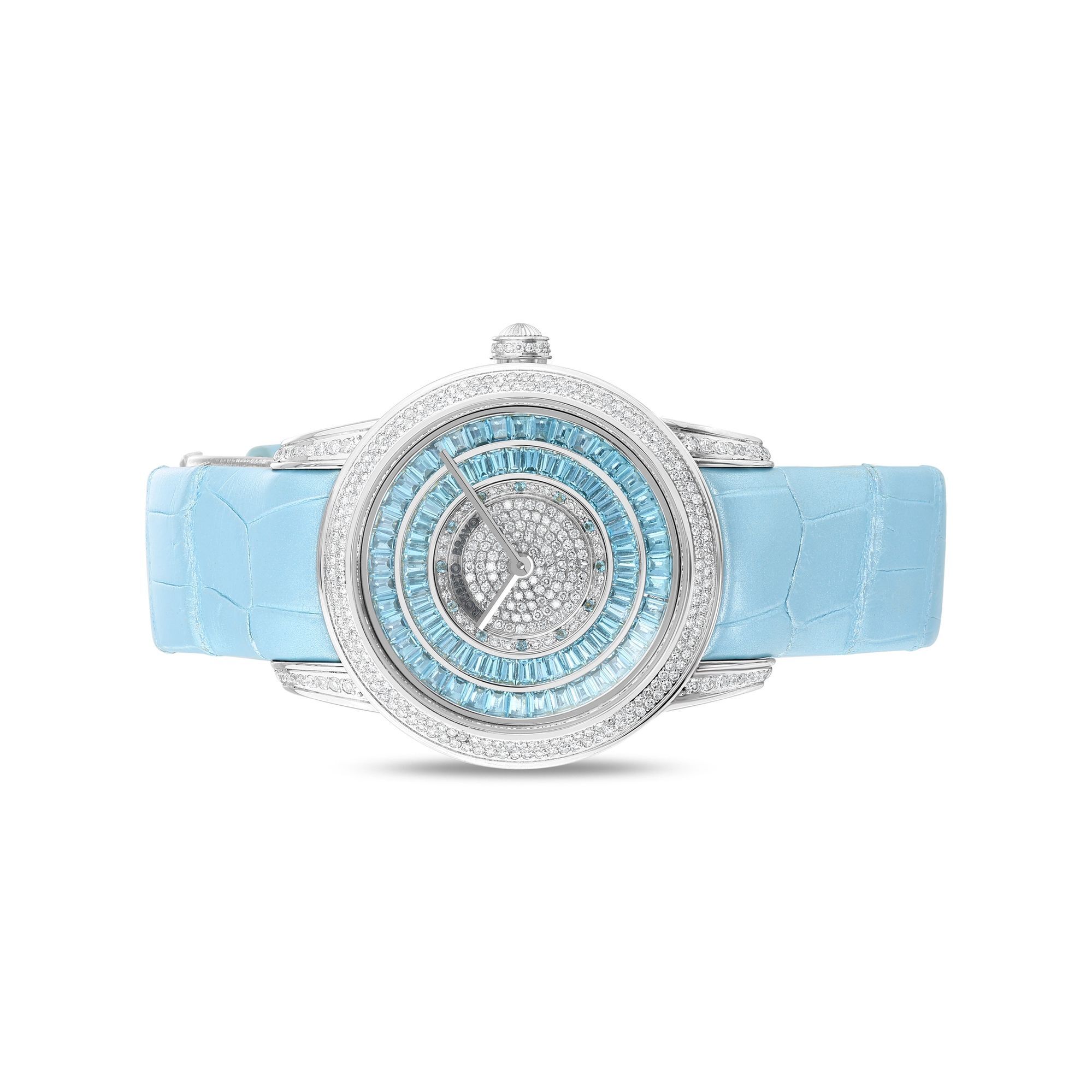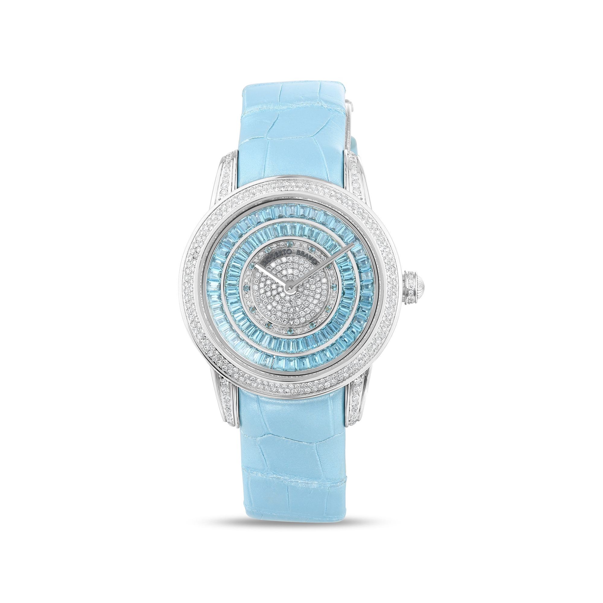 Estetik görünümü ve dakikliğin yanı sıra Roberto Bravo, egzotik taşlar ve elmaslarla kaplı özel saatlerle büyünüzün kağnağı olur.