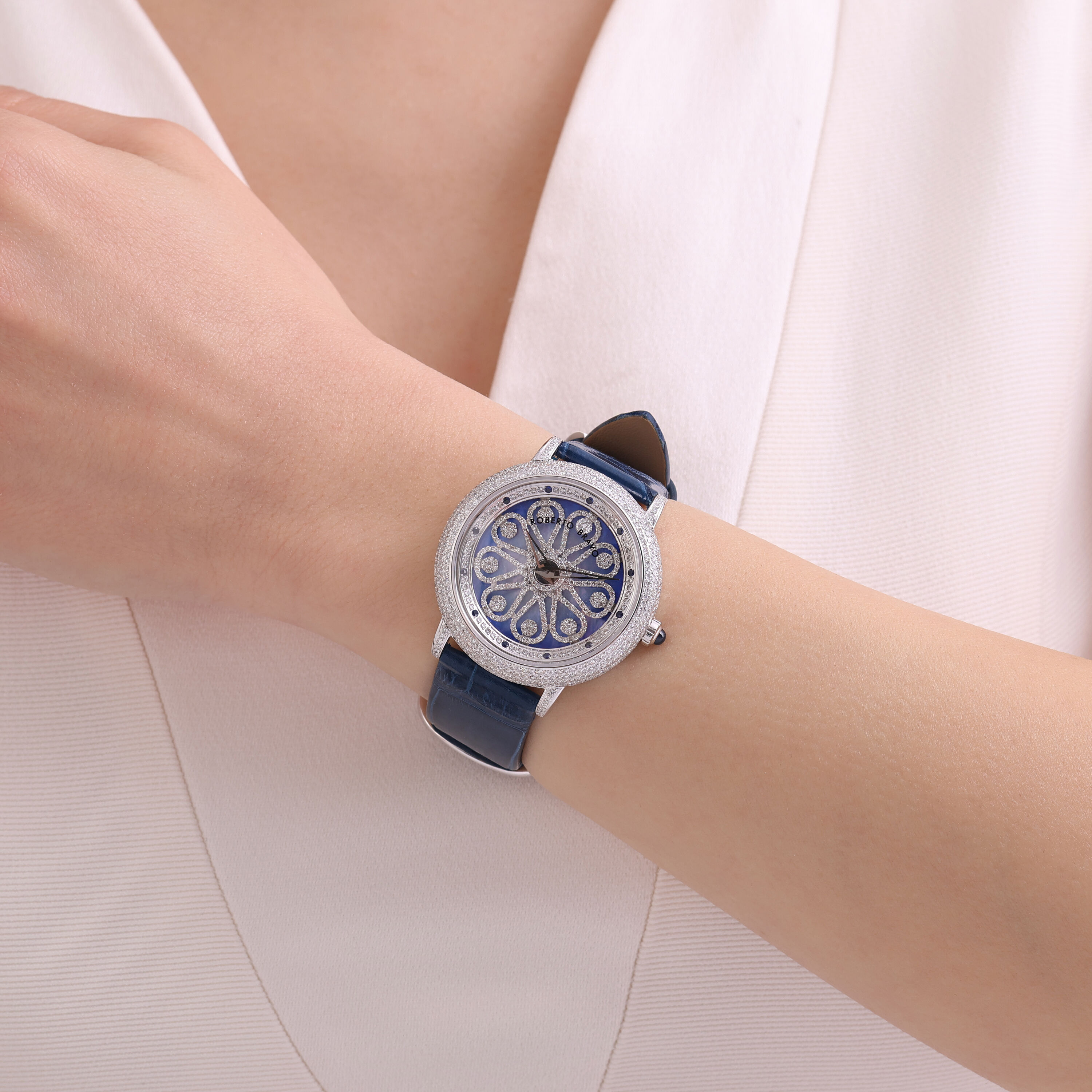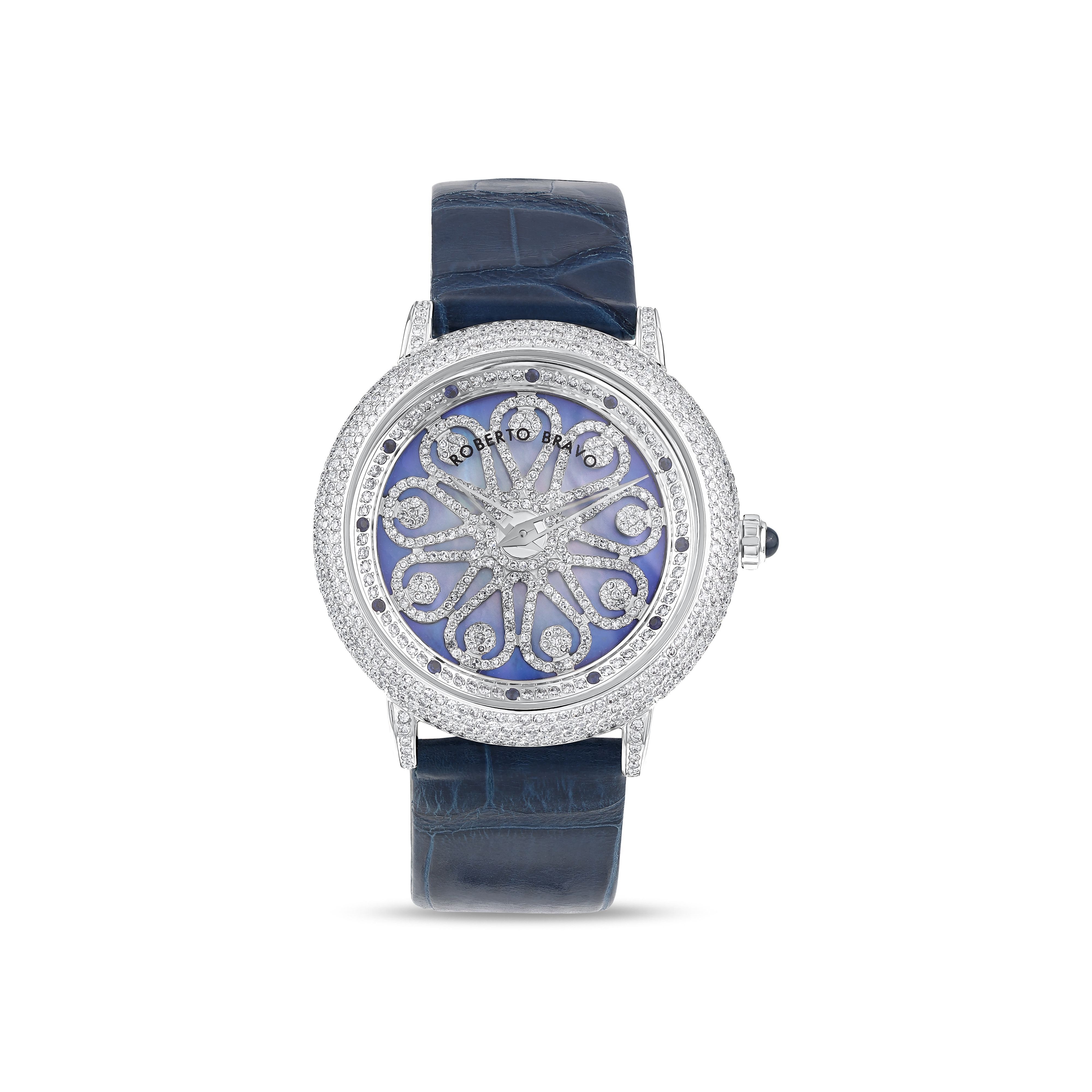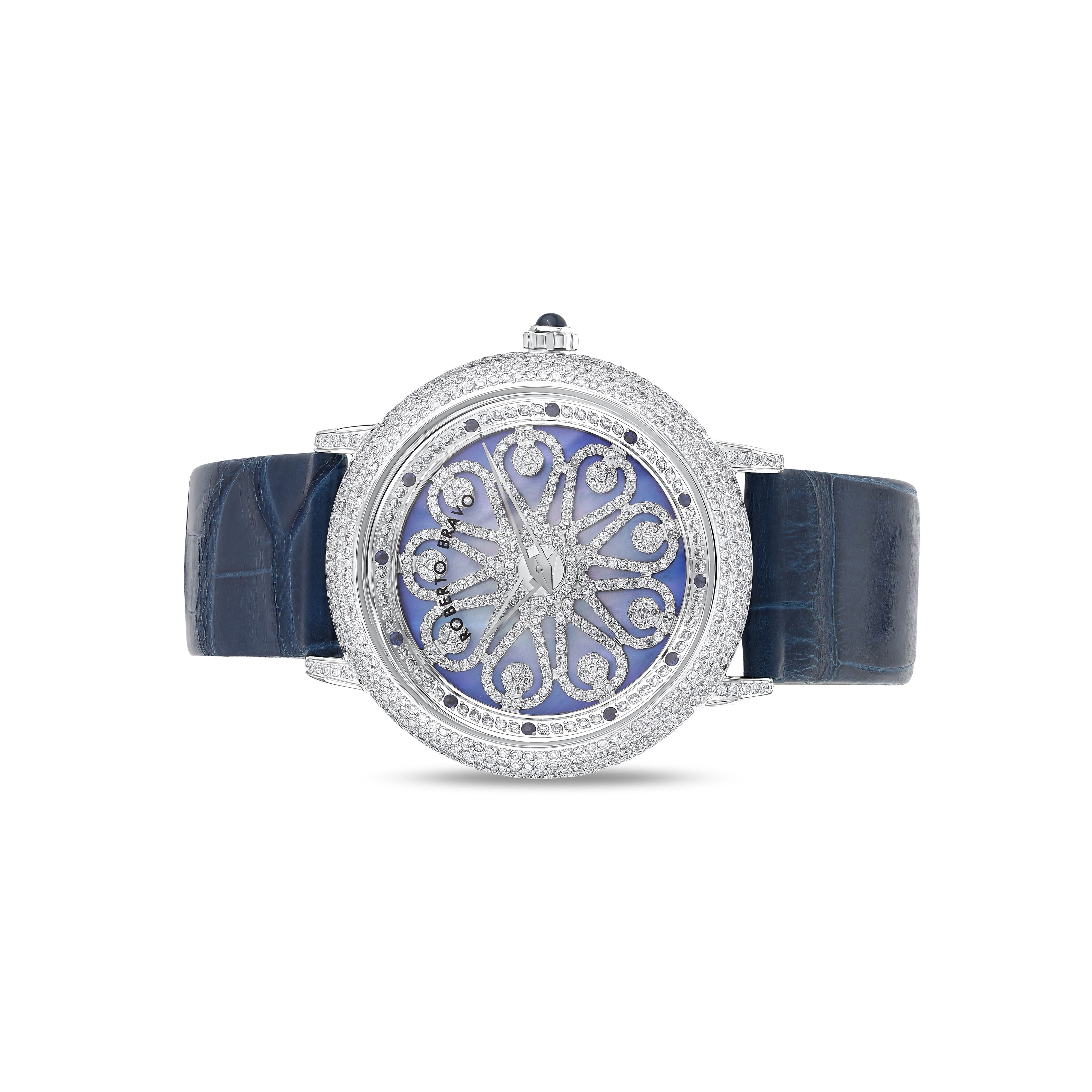 Estetik görünümü ve dakikliğin yanı sıra Roberto Bravo, egzotik taşlar ve elmaslarla kaplı özel saatlerle büyünüzün kağnağı olur.