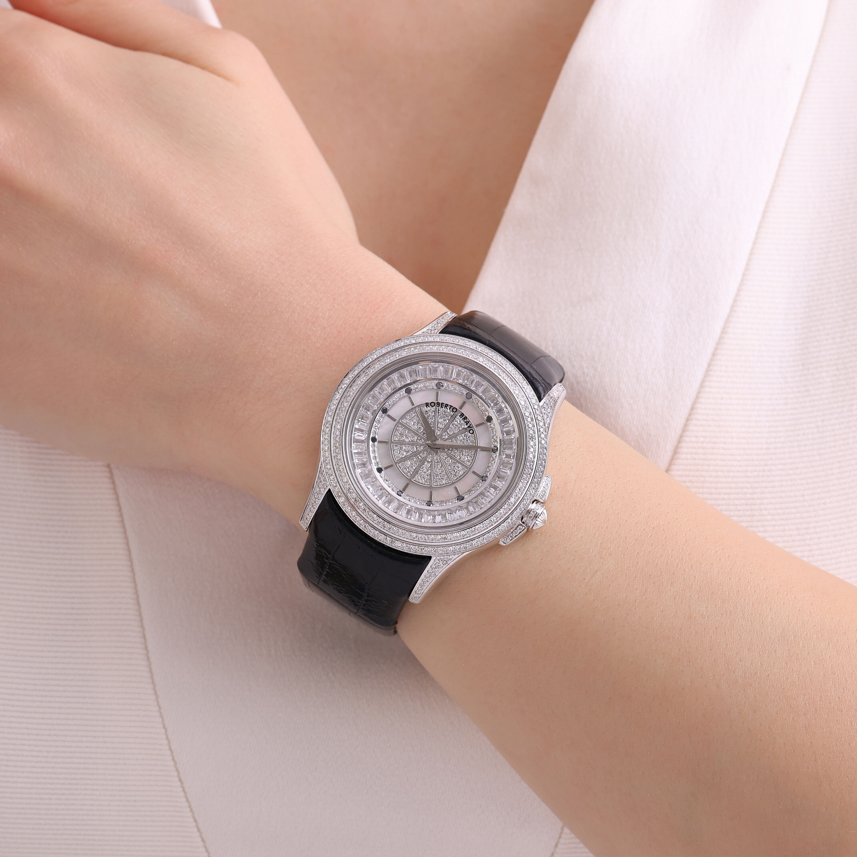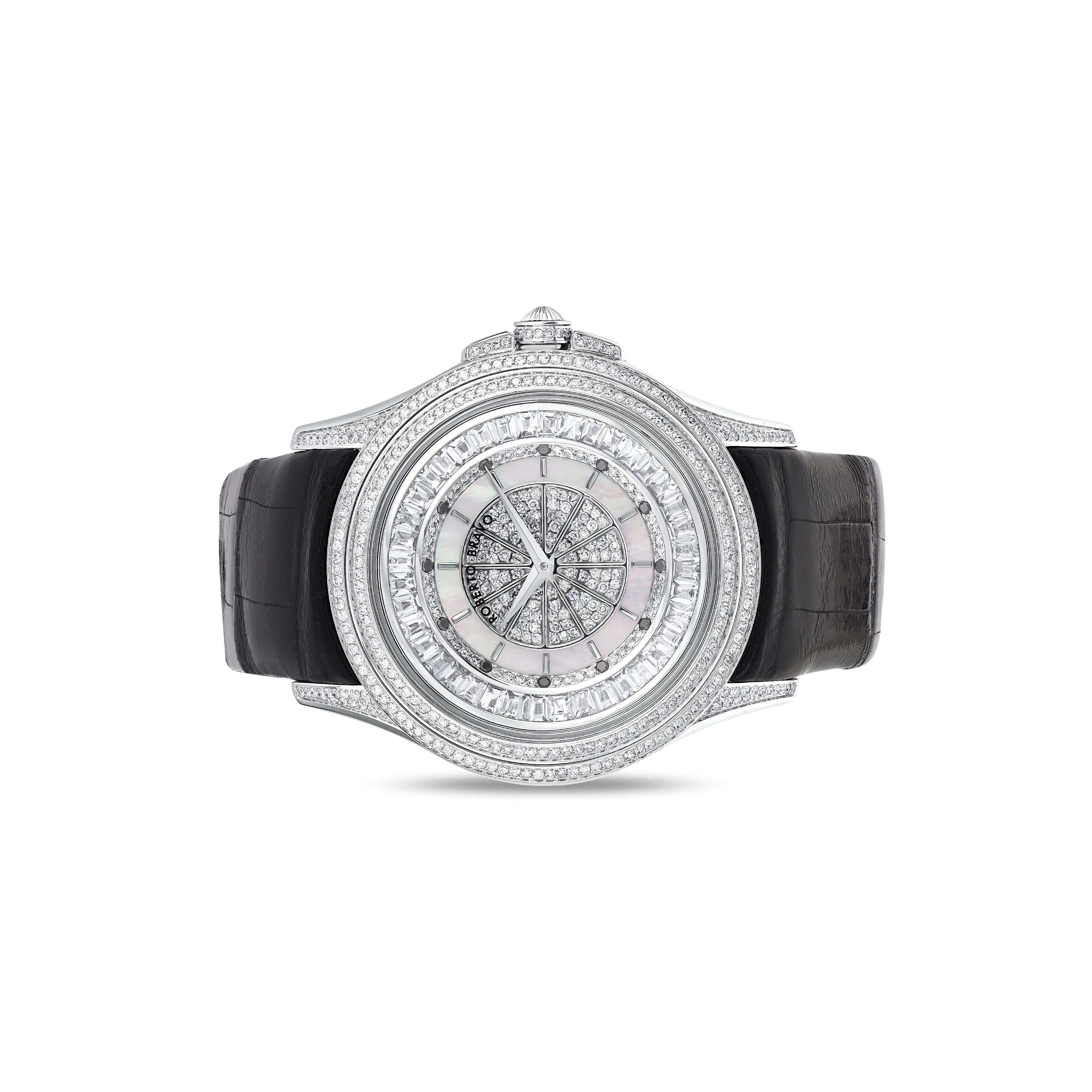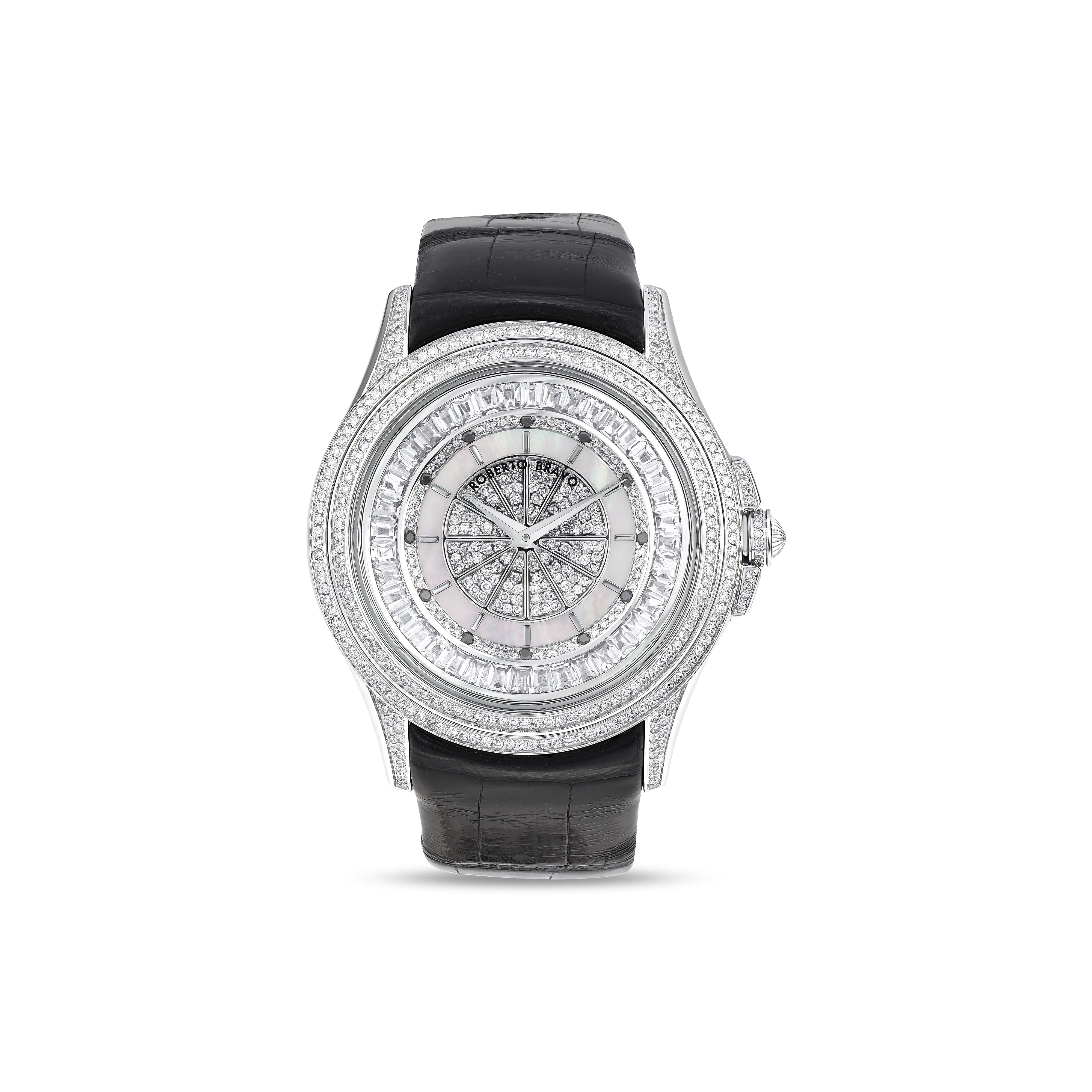 Estetik görünümü ve dakikliğin yanı sıra Roberto Bravo, egzotik taşlar ve elmaslarla kaplı özel saatlerle büyünüzün kağnağı olur.