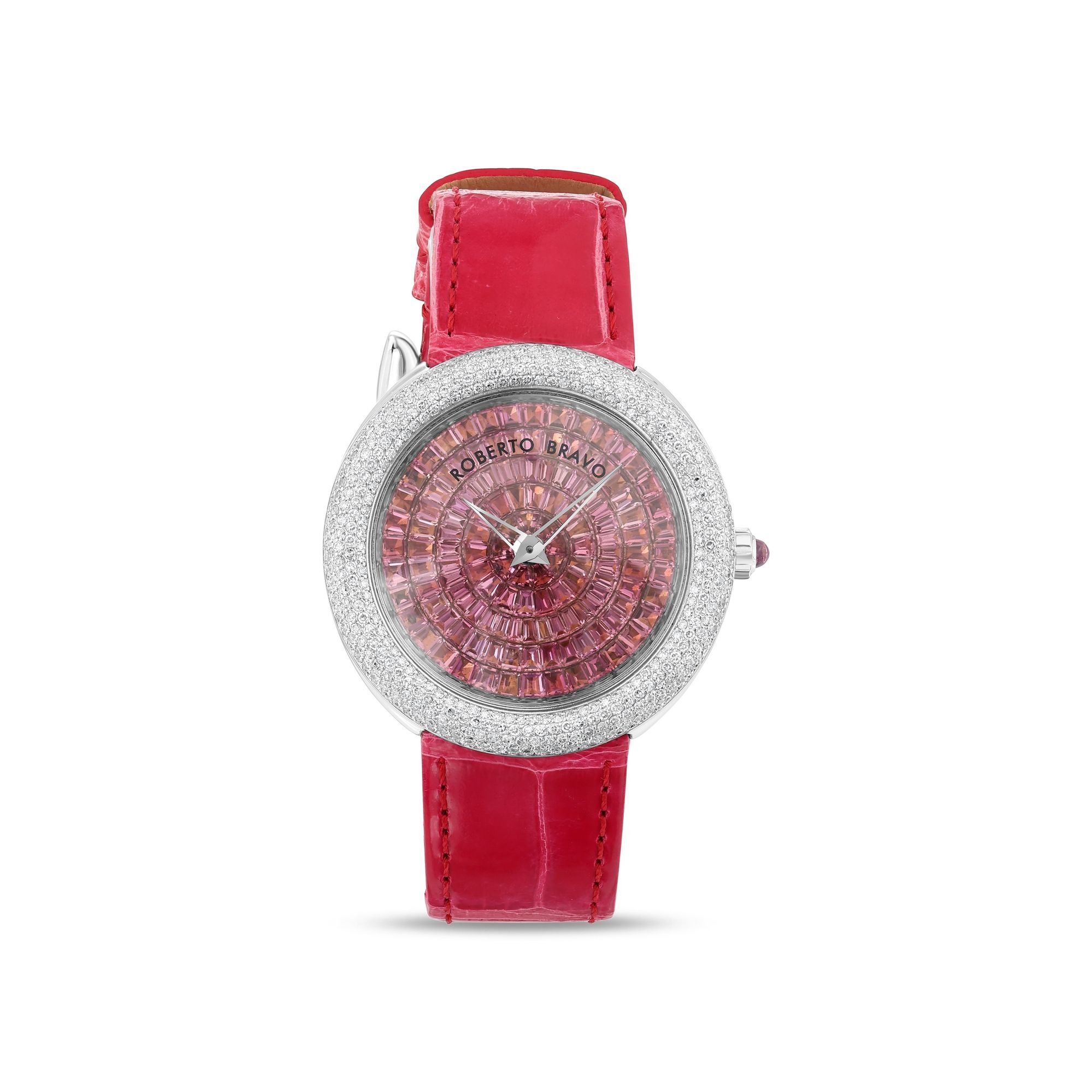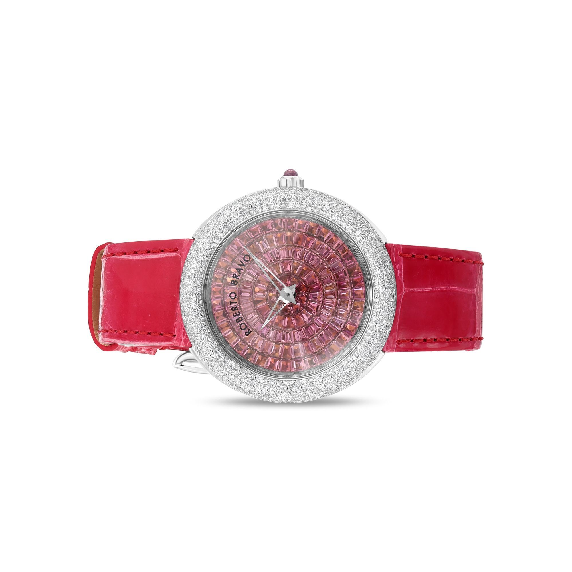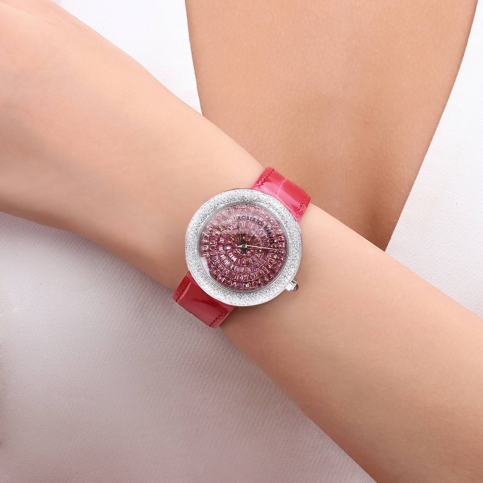 Estetik görünümü ve dakikliğin yanı sıra Roberto Bravo, egzotik taşlar ve elmaslarla kaplı özel saatlerle büyünüzün kağnağı olur.