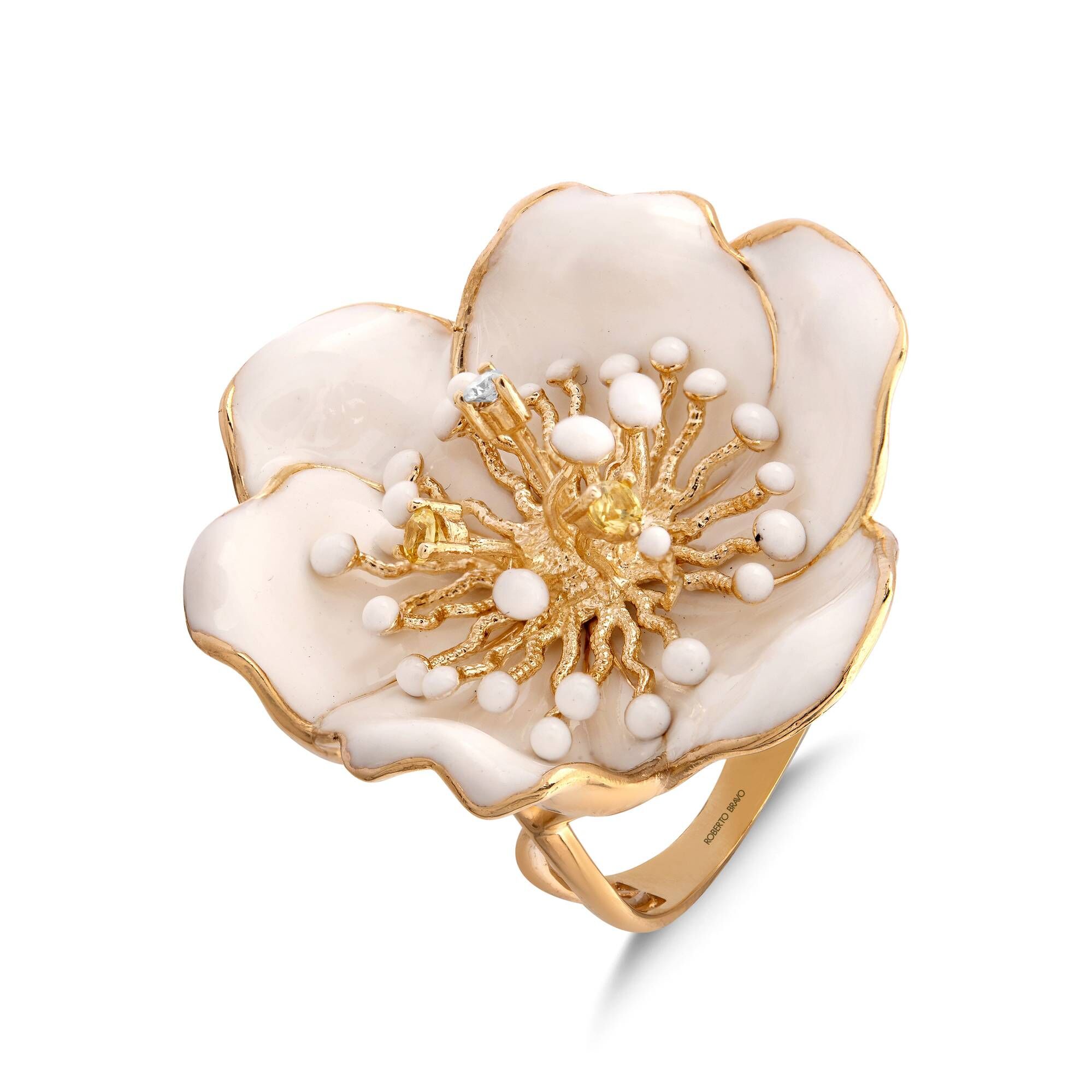 Pırlanta ve renkli safirlerle süslenmiş, nostaljik esintiler taşıyan White Dreams Koleksiyonu'yla Roberto Bravo hem günlük giyim tarzınıza hem de gece şıklığınıza ayrı stil katacak Altın üzerine beyaz mineyle tasarlanan "Roberto Bravo White Dreams" koleksiyonunda kullanılan saflığın simgesi beyaz çiçekler ve romantik dantel figürler takı meraklıların kalbine hitap edecek. Özgün ve sıra dışı dokunuşlarla şekillenen kolye, küpe, yüzük ve bilekliklerden oluşan "White Dreams" koleksiyonu; benzersiz el işçiliği ve dikkat çekici çizgileriyle gerçek bir yıldız gibi parlamanızı sağlayacak.